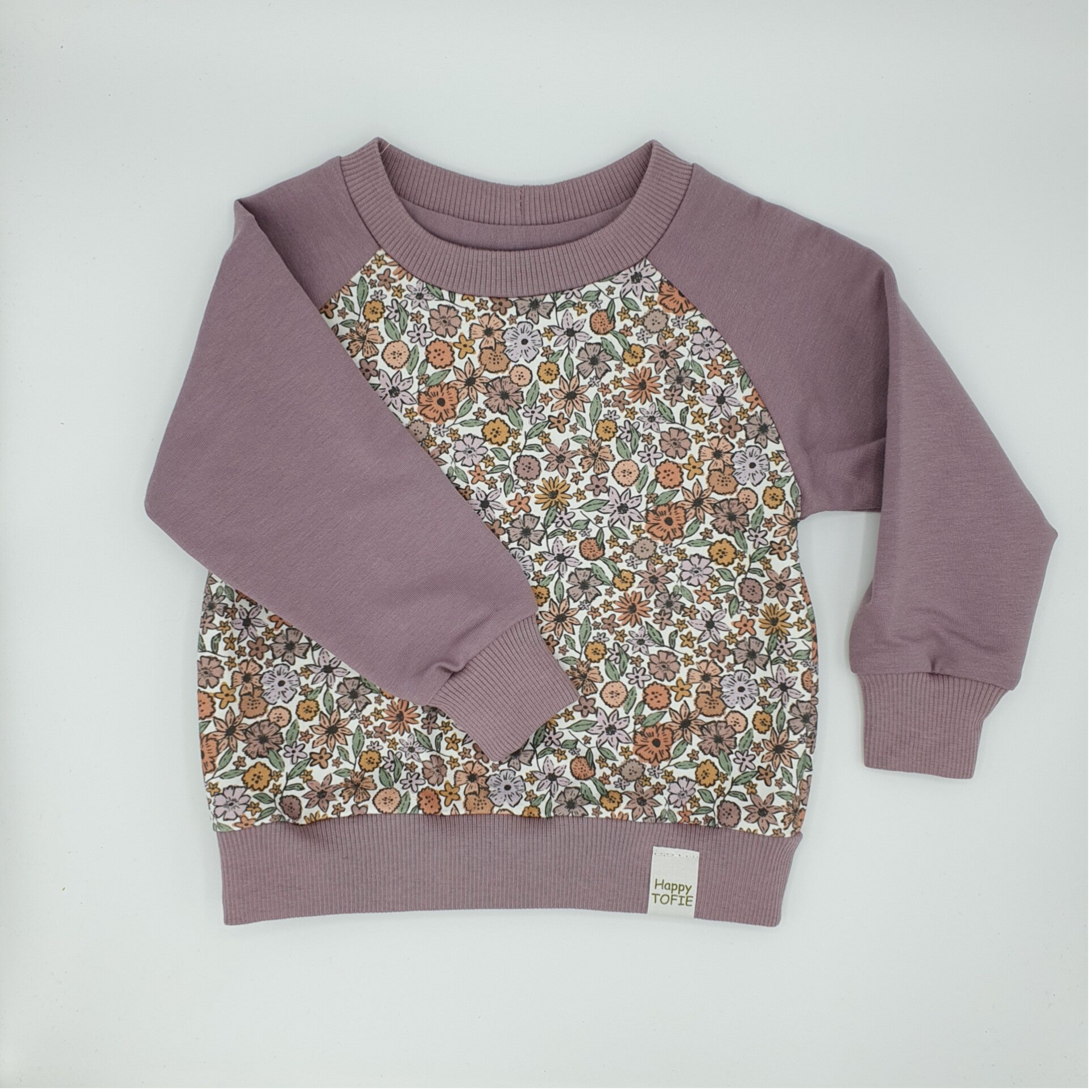 Sweater met kleine bloemetjes en paarse mouwen
